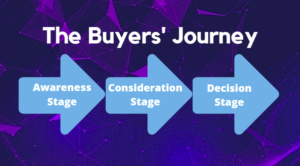 But will these opportunities impact your quota this quarter, next quarter, or sometime in the next 12 months? Specific timing depends on your industry’s normal sales cycles, as well as where your prospect is in their Buyer’s Journey. The Buyer’s Journey has three stages: Awareness, Consideration, and Decision. There are pluses and minuses to connecting with prospects in each stage.